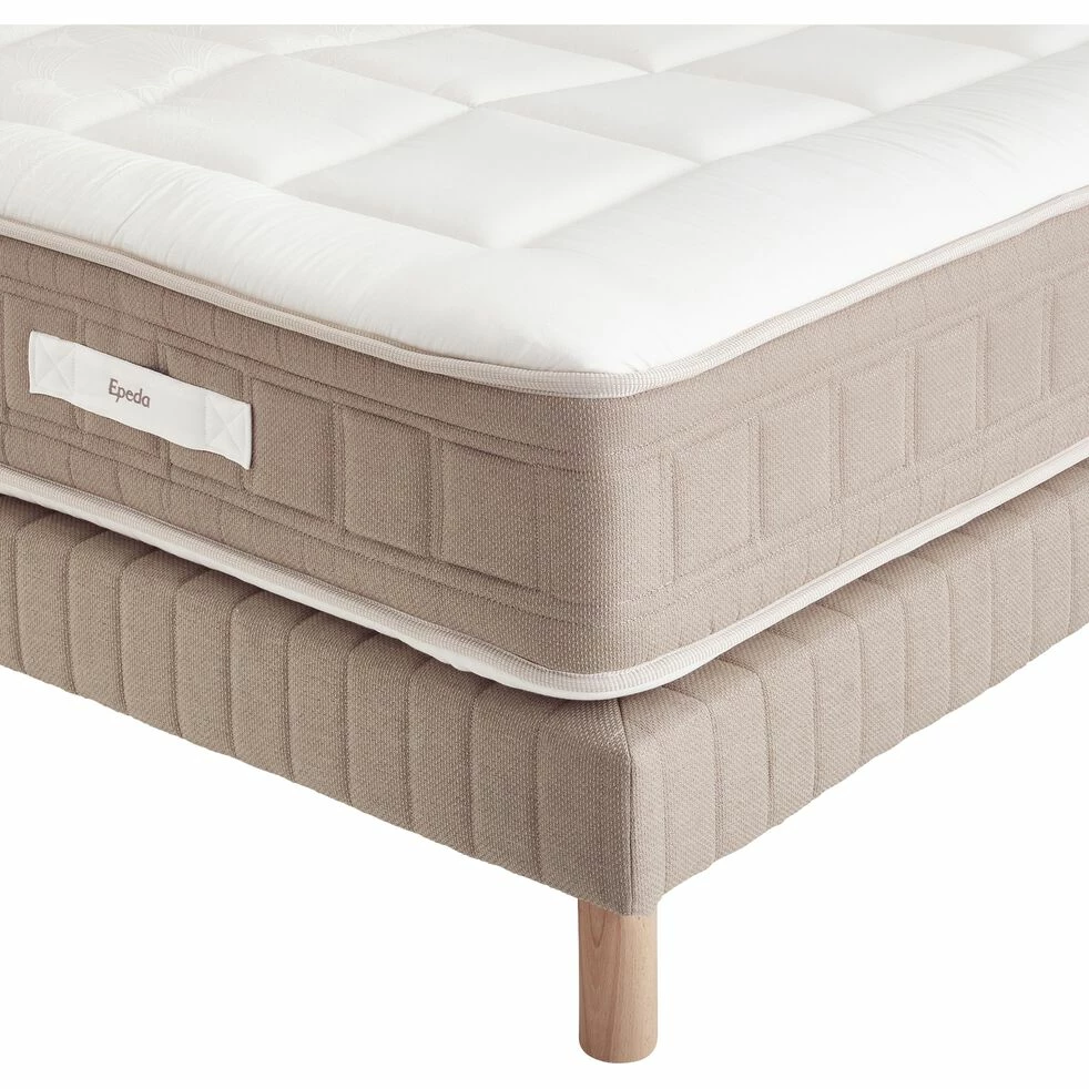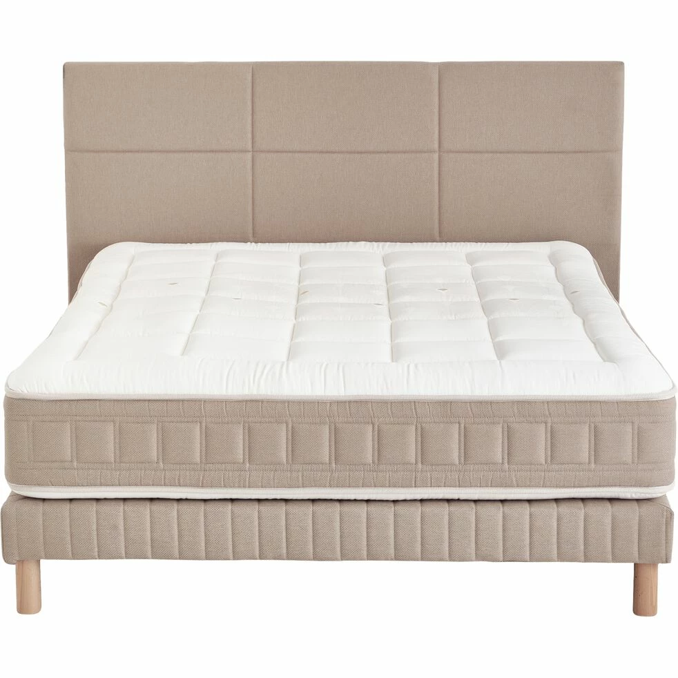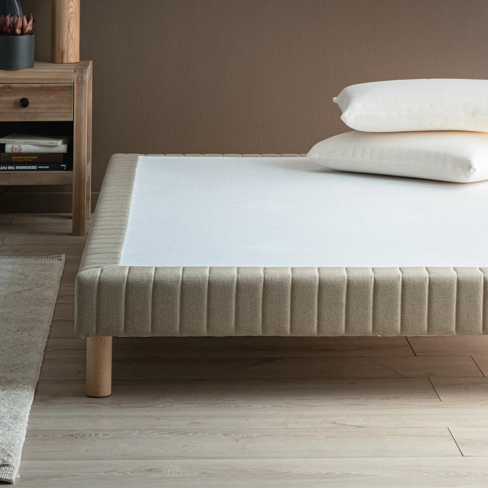 Azara est un sommier tapissier de 140×200 cm. Ce sommier 2 places se présente sous la forme d’une caisse en bois massif, associée à des lattes en bois d’épicéa et à une enveloppe décorative beige. Ce sommier offre un soutien morphologique au corps : un atout pour un sommeil paisible et réparateur. Ce sommier en tissu beige participe également à la décoration de la chambre à coucher : un design doux et lumineux pour une atmosphère chaleureuse.