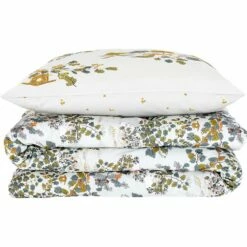 Cette parure de lit transportera votre enfant au coeur de la forêt au milieu d’êtres minuscules et d’animaux espiègles. Le motif de la housse de couette, inspiré d’une tapisserie des années 50, emmène dans le végétal pour rappeler les sous-bois à la lumière du jour. Réversible, l’histoire se poursuit au verso avec des motifs plus doux, plus léger. La décoration de chambre de votre marmot sera mise en valeur grâce à cette housse de couette et la taie d’oreiller pour une déco élégante.