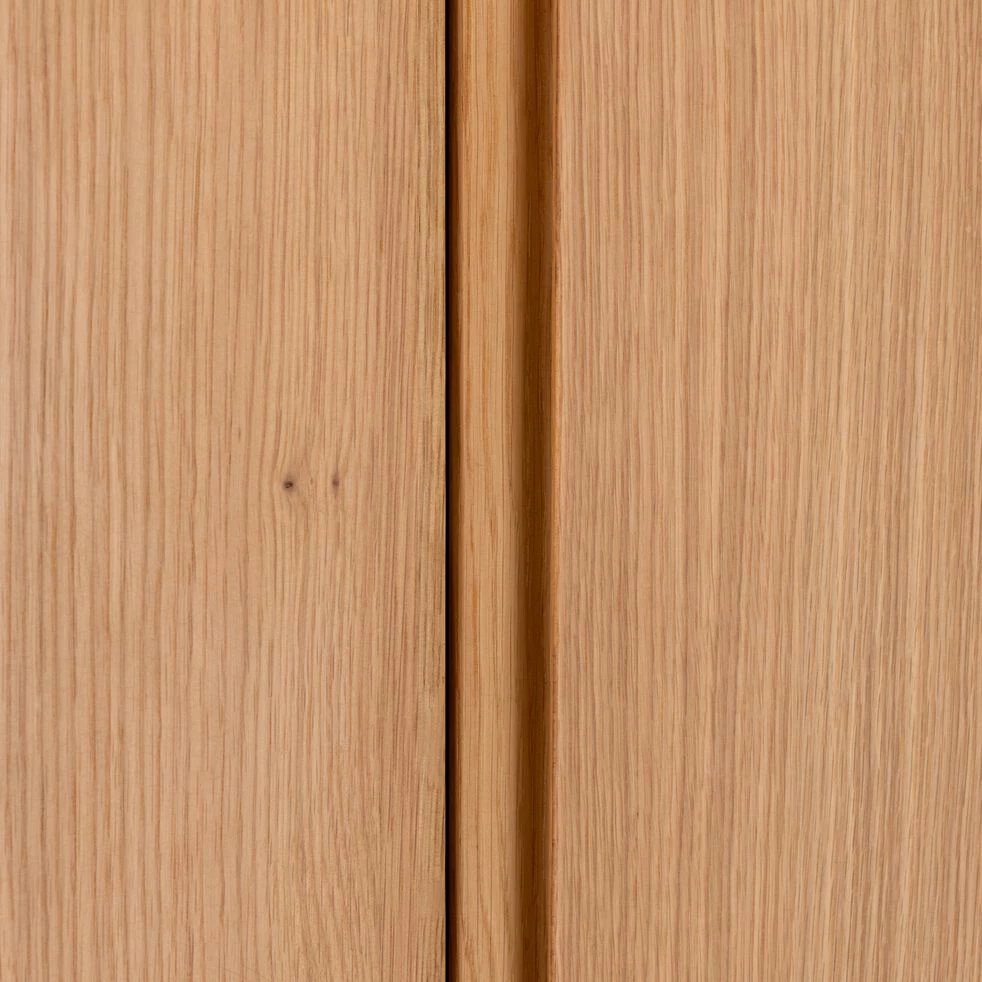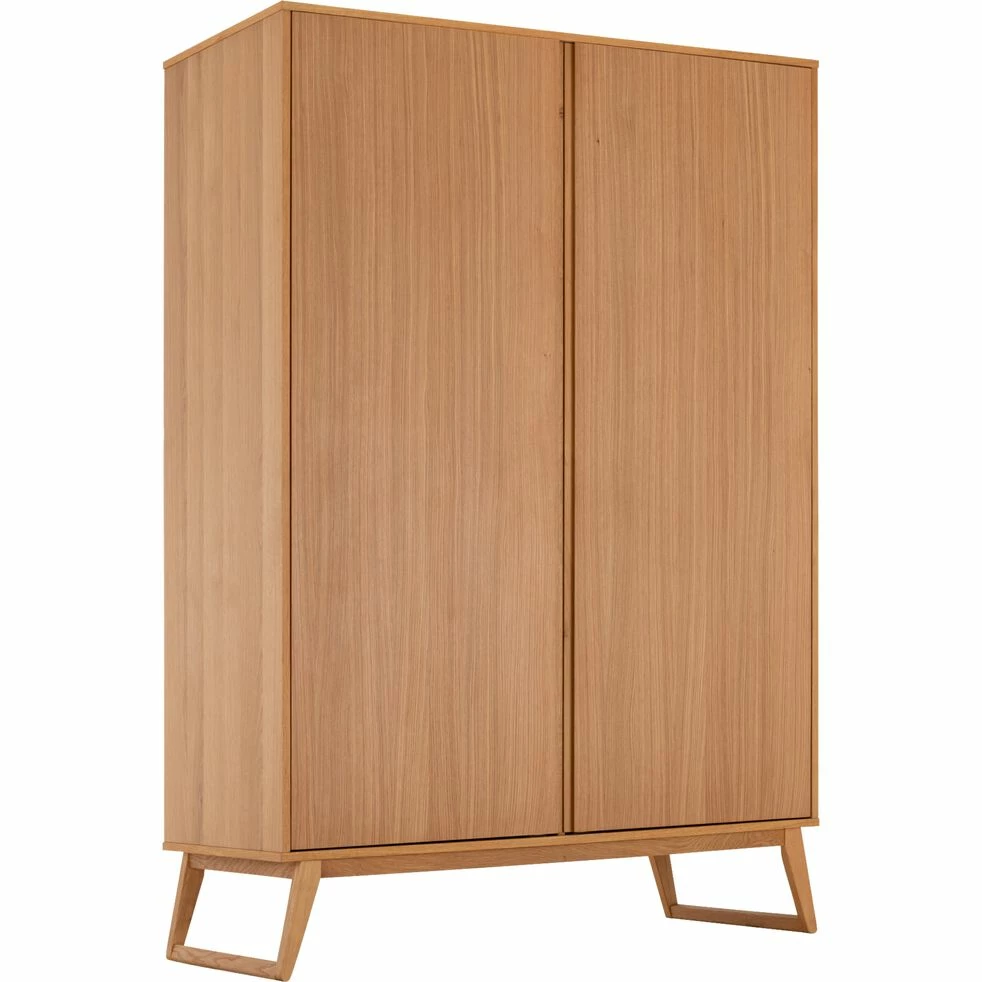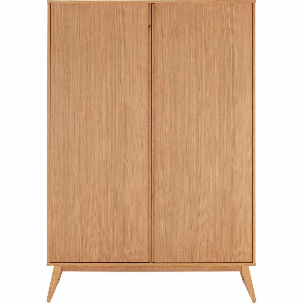 Cette armoire en plaqué chêne est idéale afin de ranger tous vos vêtements. Avec son placard présentant des étagères, et sa penderie, elle vous permet de disposer vos t-shirts, vos pantalons et autres pulls afin que votre chambre soit toujours ordonnée. Aussi pratique qu’esthétique, ce meuble est parfait afin de décorer votre maison d’une pièce subtile aux allures naturelles. L’armoire Bruna est aussi un bel élément déco pour votre chambre à coucher.