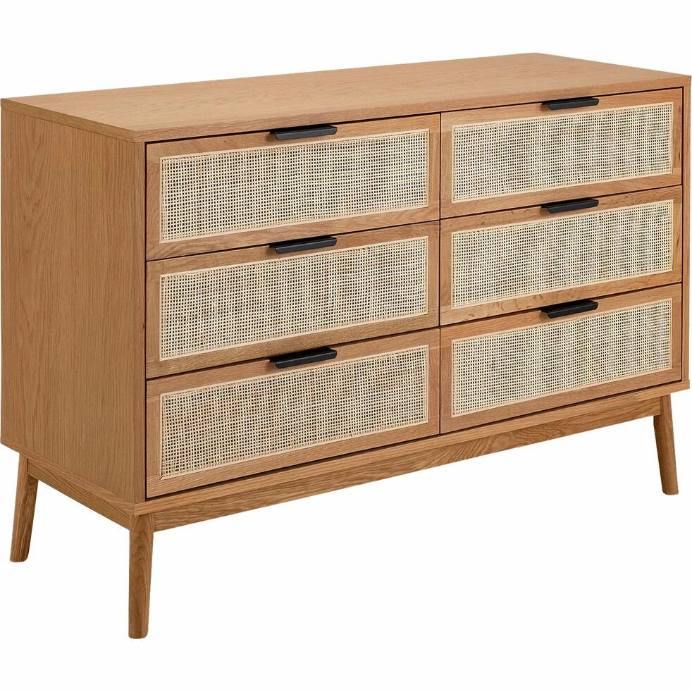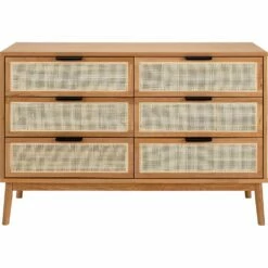 La commode est le mobilier idéal pour optimiser votre intérieur et créer un espace de rangement supplémentaire. Le modèle Callista propose 6 grands tiroirs, parfaits pour ranger vos affaires. Cette commode en bois présente un design intemporel et un coloris naturel, ainsi qu’une finition en cannage, ce qui en fait un véritable atout déco. Cette commode saura trouver sa place dans votre chambre à coucher.
