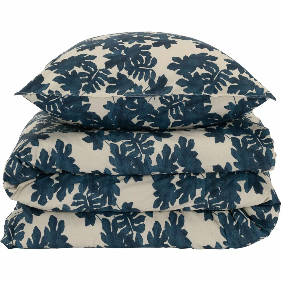 Cette housse de couette 240×220 cm et ses deux taies d’oreiller sont parfaites pour habiller votre lit 2 places. Ses motifs feuilles de figuiers et sa couleur bleutée rappellent les côtes grecques d’où on peut apercevoir les vagues de la mer égée. Composée de coton 57 fils, cette housse de couette est particulièrement douce et légère, mais elle est aussi résistante. Sa finition droite avec boutons cachés et ses taies d’oreiller avec double surpiqûre offrent une impression soignée et nette. Associez votre housse de couette avec des coussins décoratifs aux plusieurs teintes de bleu afin d’obtenir une chambre au charme méditerranéen représentative de ce motif inspiré du charme de la mer égée.