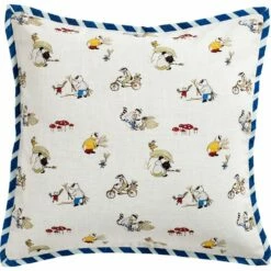 Fripons est un coussin enfant qui met en scène deux amis de la forêt : un blaireau et une souris. Ces deux compagnons sont illustrés dans diverses situations du quotidien, des saynètes légères et réconfortantes, parfaites pour stimuler l’imagination de votre enfant. Ce coussin en coton arbore également un liseré bleu qui fait ressortir les couleurs de ce coussin à motifs. Ce coussin déco fourmille de vie et participe à une atmosphère chaleureuse dans la chambre enfant.
