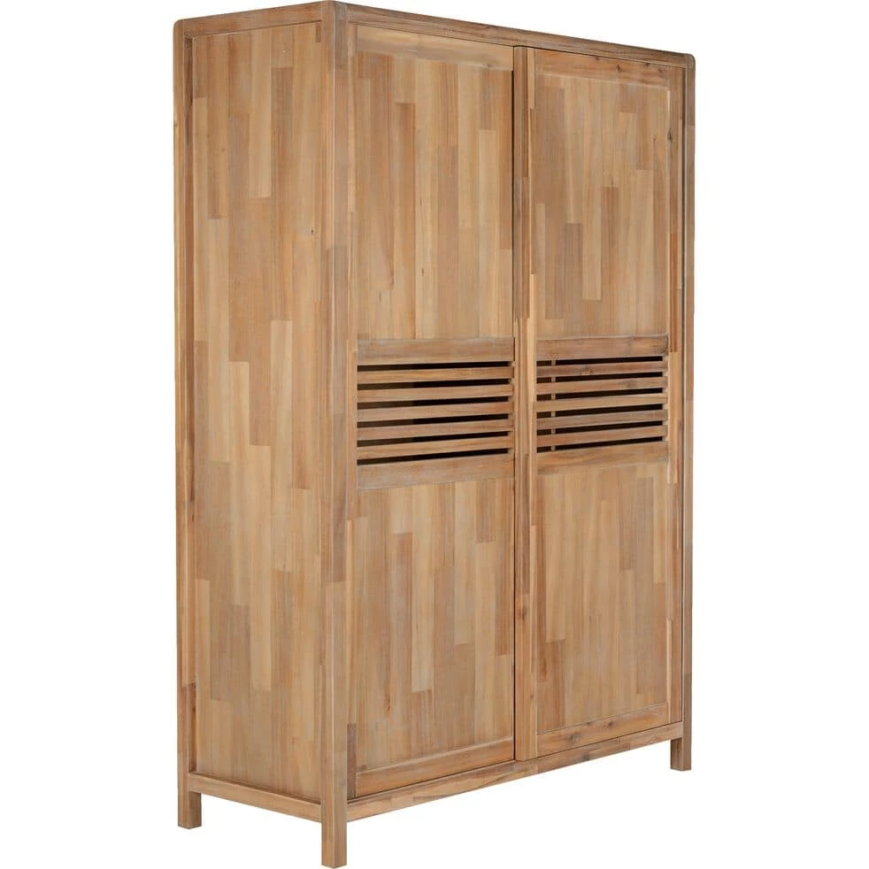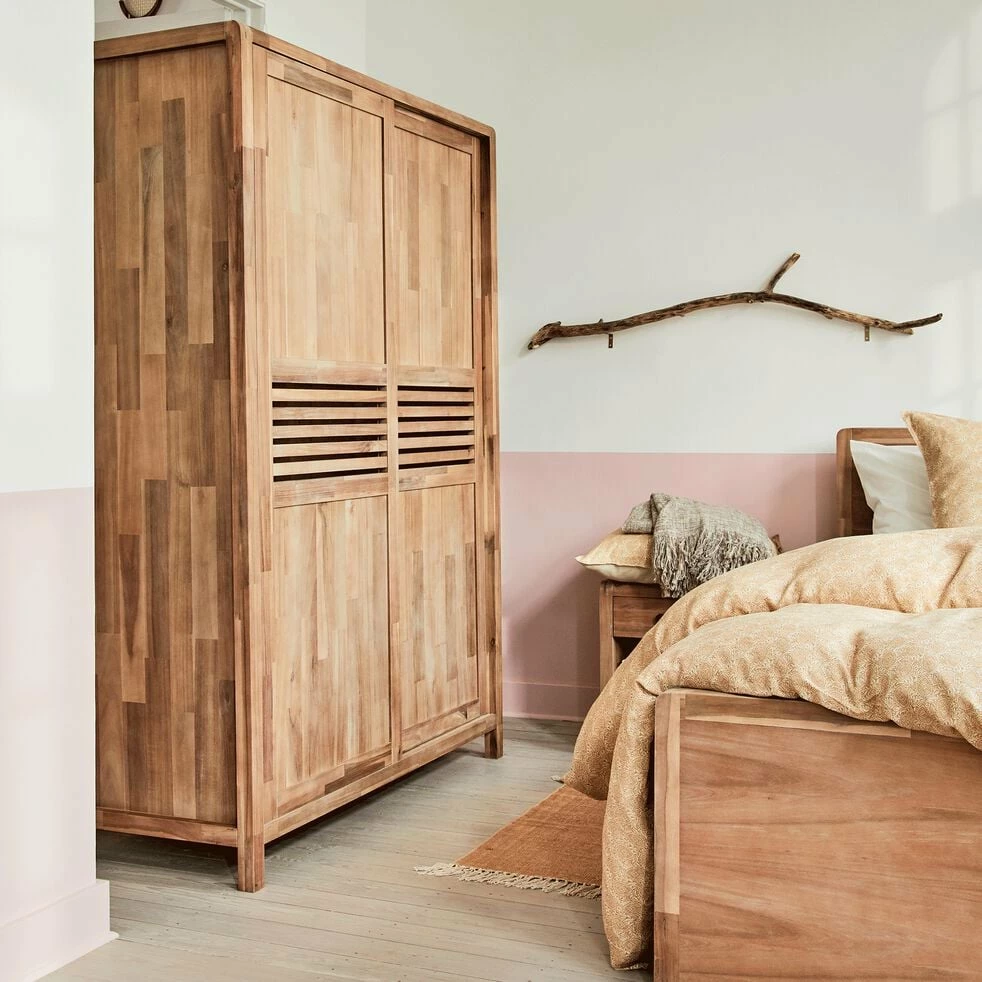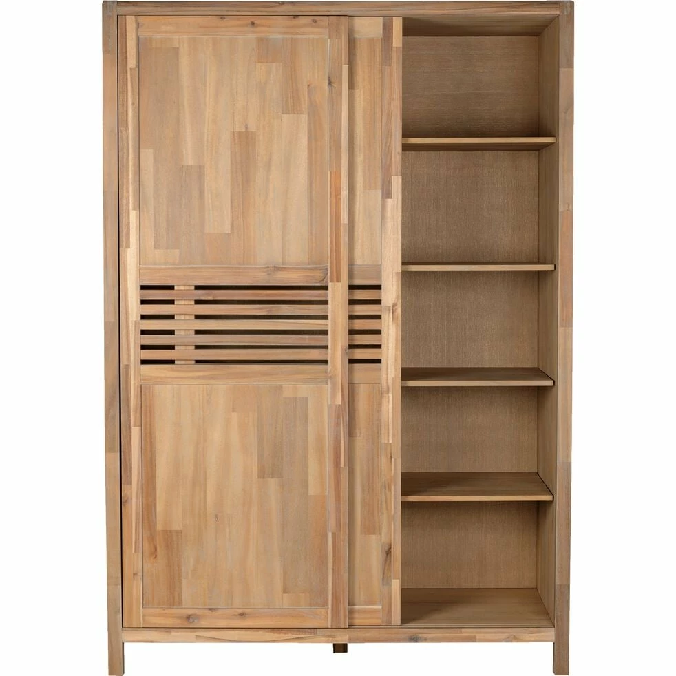 Vous allez aimer cette grande armoire en acacia massif et son charme authentique ! Ce dressing est composé d’une penderie avec une étagère sur le dessus, pratique pour y ranger du linge de lit ou des vêtements peu utilisés. De l’autre côté, des étagères pour vos vêtements. Simple et efficace !