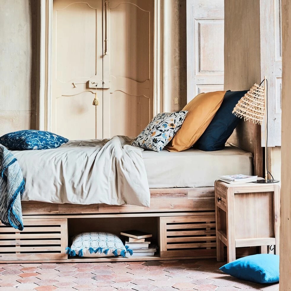 Voici une table de chevet minimaliste mais néanmoins authentique grâce à sa matière en acacia massif effet brut. Composée d’un tiroir, elle se révèlera pratique pour ranger vos petites affaires avant de dormir. A associer aux autres meubles de la gamme GAIA pour une chambre au style naturel et rustique.