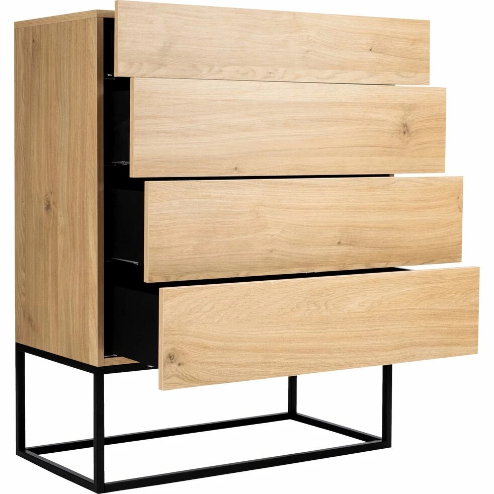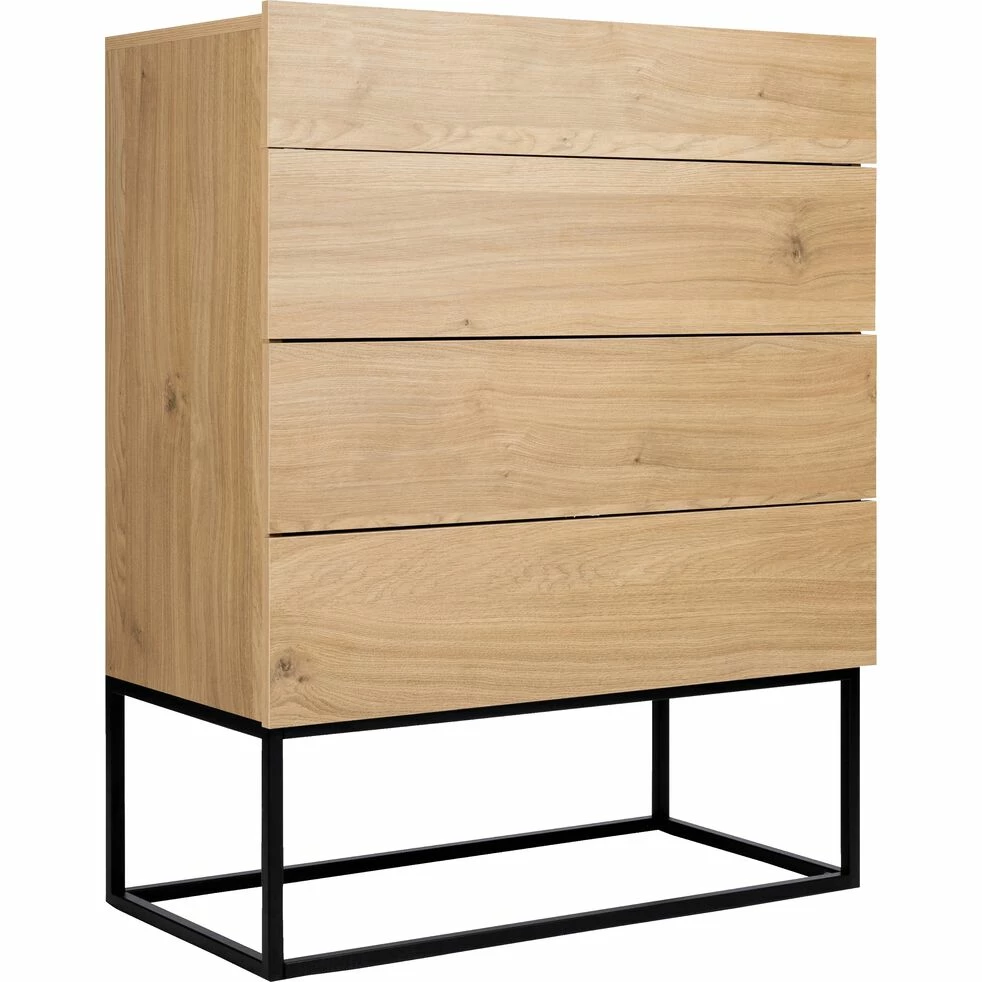 Cette élégante commode Gaspard effet chêne avec ses pieds en métal noir se marie très bien à votre chambre quelle qu’en soit la décoration. Un meuble de chambre à la fois esthétique et pratique grâce à ses 4 tiroirs qui offrent un bel espace de rangement