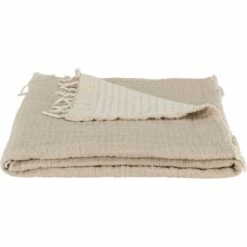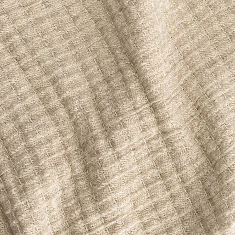 Khanta est un couvre-lit en coton, avec des finitions légères et raffinées. Sur son étoffe, quelques détails en double gaze de coton ainsi qu’une surpiqûre blanche viennent apporter de la texture et du contraste. Ce couvre-lit beige est également orné de deux côtés frangés et de deux côtés effilochés. Touche de confort supplémentaire sur votre lit, ce grand plaid de 230×250 cm accompagne vos nuits de sa douceur et vos journées de sa beauté.