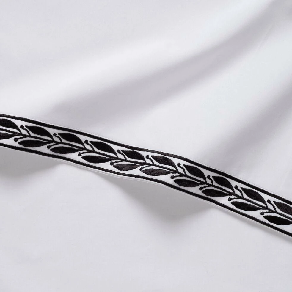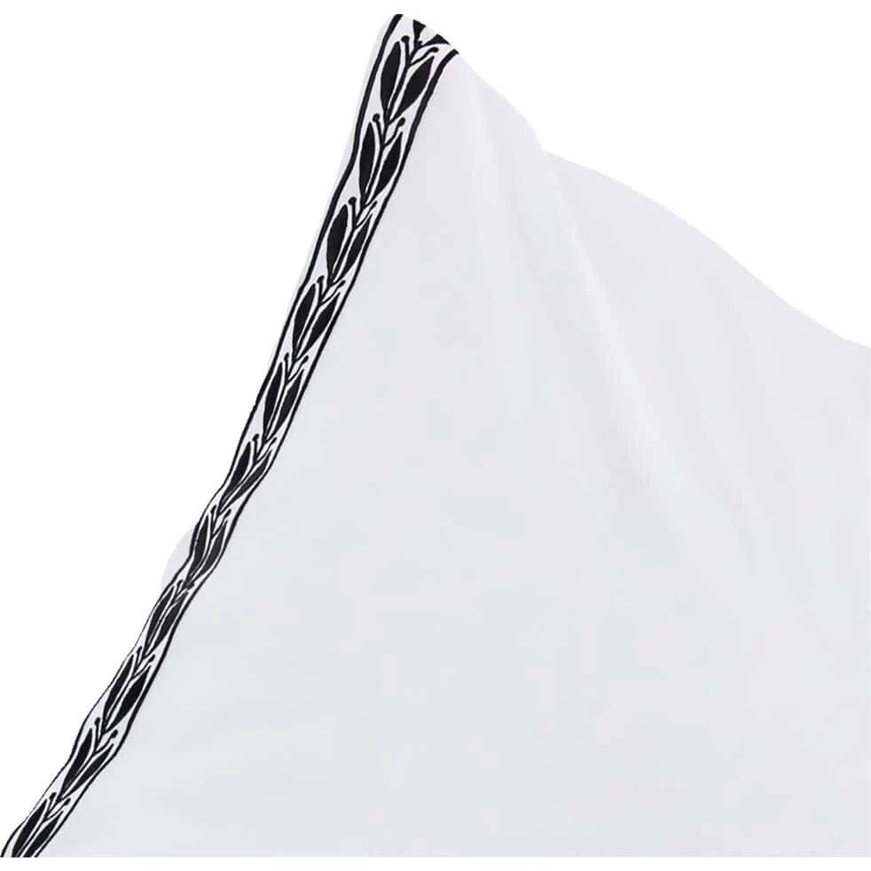 Apportez une touche d’éclat à votre lit avec les taies d’oreiller Kissos. Ces taies d’oreiller en percale de coton arborent un tissu uni, délicatement relevé par une frise noire. Brodé, ce liseré révèle un motif végétal aussi doux que poétique. Ces taies d’oreiller blanches conviennent pour des oreillers carrés de 65×65 cm. D’une belle simplicité, elles complètent n’importe quelle housse de couette avec élégance et cachet.