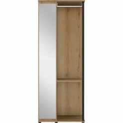 Pratique, Lucian est un petit dressing ouvert. Cette colonne de rangement se compose d’un espace penderie et de plusieurs niches. Il est ainsi possible d’y suspendre vos cintres et d’y ranger vos vêtements pliés ainsi que vos accessoires type chaussures et sacs. Cette armoire en bois arbore un grand miroir en pied, parfait pour composer et admirez vos tenues. Le bois à la teinte claire épouse des finitions en métal noir, une association intemporelle aux accents contemporains.