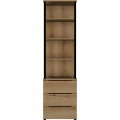 Cette colonne de rangement trouve parfaitement sa place dans la chambre à coucher. Avec son espace penderie et ses trois tiroirs coulissants, cette armoire en bois permet de ranger et de mettre facilement à disposition vos vêtements et accessoires. La pièce est mieux ordonnée et gagne en charme grâce aux motifs du bois. Ce joli meuble de 220 cm de haut est fabriqué en France.