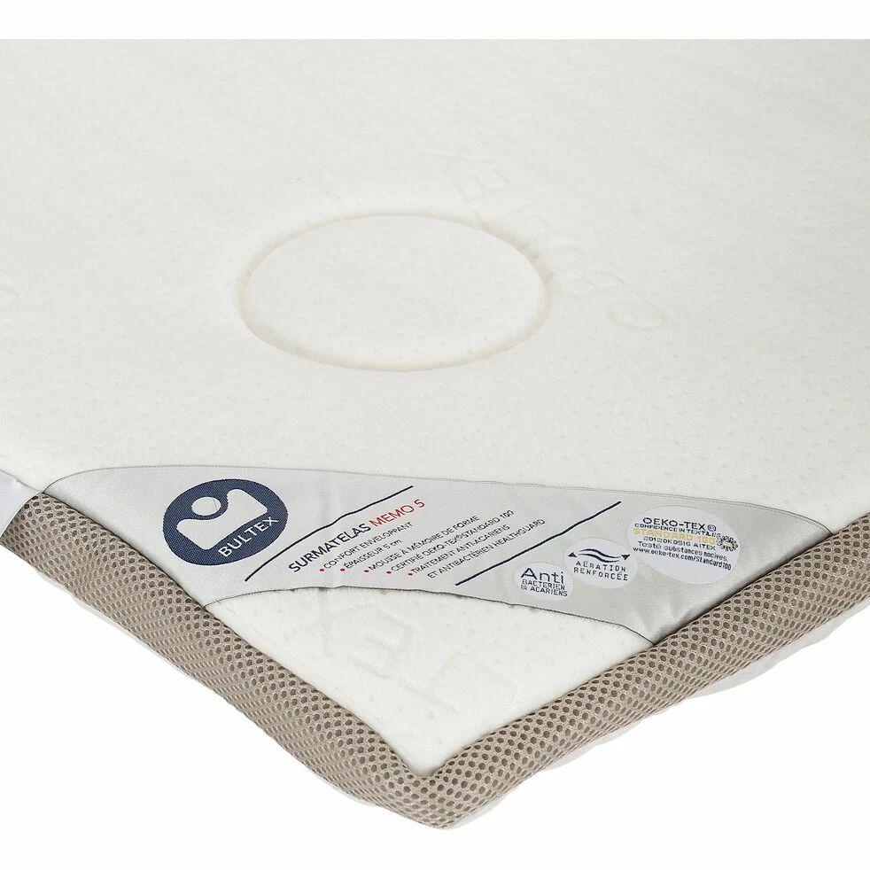 Vous souhaiteriez rendre votre matelas plus moelleux ? Optez pour ce surmatelas Bultex en mousse à mémoire de forme d’épaisseur 5 cm qui se pose directement sur votre matelas pour un accueil enveloppant.