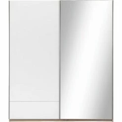 Ici, découvrez un dressing avec deux portes coulissantes, de couleur blanche. Ce meuble vous offre de beaux volumes pour y ranger vos affaires. Vous pouvez choisir cette pièce seule ou associée à un des éléments de la gamme. Chaque module est indépendant, mais ils se complètent aussi parfaitement entre eux. Ce sont des produits de qualité qui vous sont proposés, avec une finition en mélanine et une impression effet bois au toucher. Résistants, ces meubles dureront dans le temps. Le montage de ces derniers est très aisé et se fait en vertical. Les coins des modules sont découpés afin de laisser passer les plinthes et que vous puissiez placer vos meubles contre le mur.