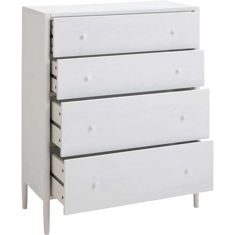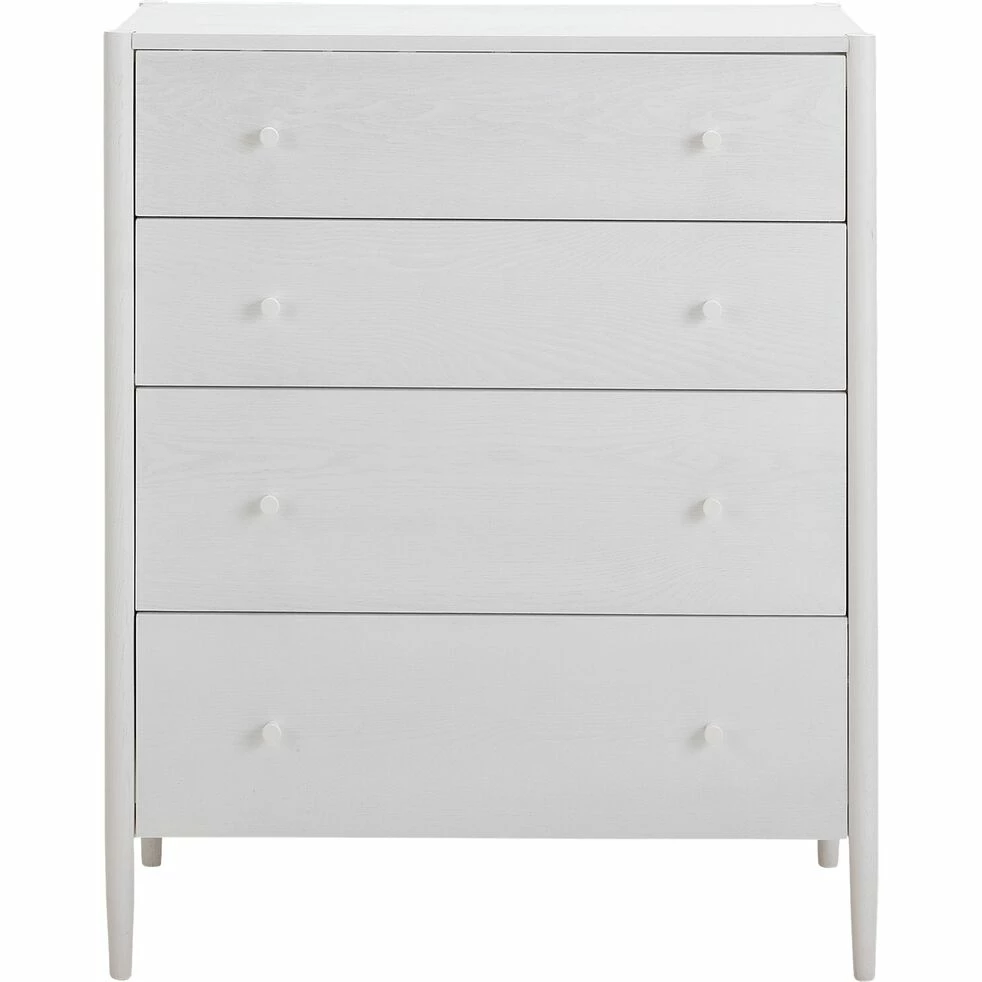 Une jolie pour votre chambre à coucher. La chaleur du bois est associée à des lignes droites et un coloris blanc pour un style moderne.Ses 4 tiroirs coulissants vous offrent un bel espace de rangement. Vous pourrez disposer vos vêtements et accessoires facilement et les garder accessibles. Une taille optimale, qui combine gain de place dans votre pièce et grande capacité de rangement. Un meuble qui sublime votre chambre de son charme.