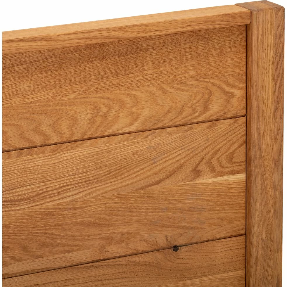 Aménagez une chambre à coucher charmante et au look intemporel grâce au lit Reno. Ici, en 180x200cm, ce lit deux places en chêne vous offre un joli couchage. Associez-le à un sommier de la même taille et un bon matelas pour profiter chaque nuit d’un sommeil réparateur.