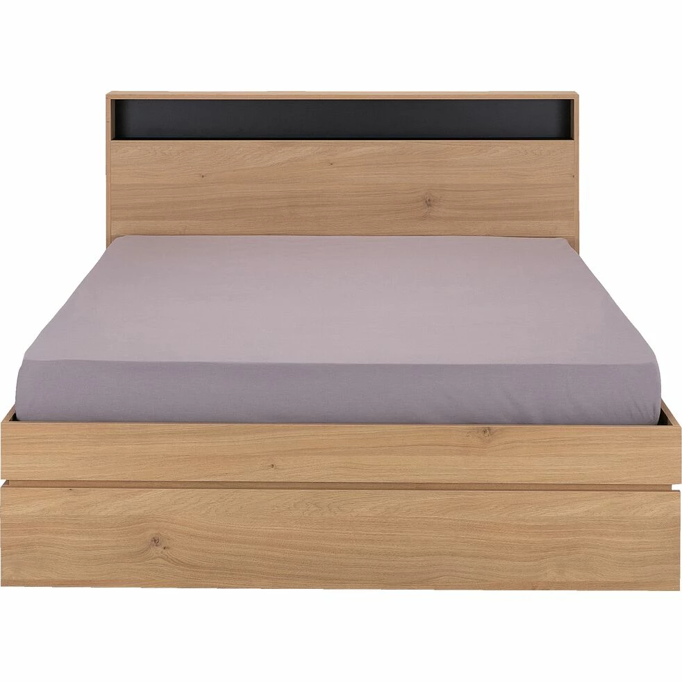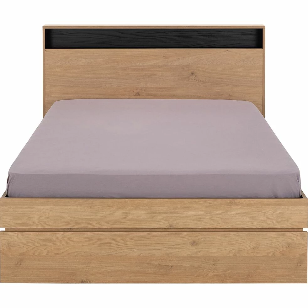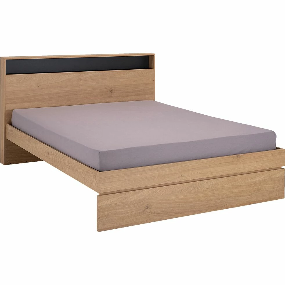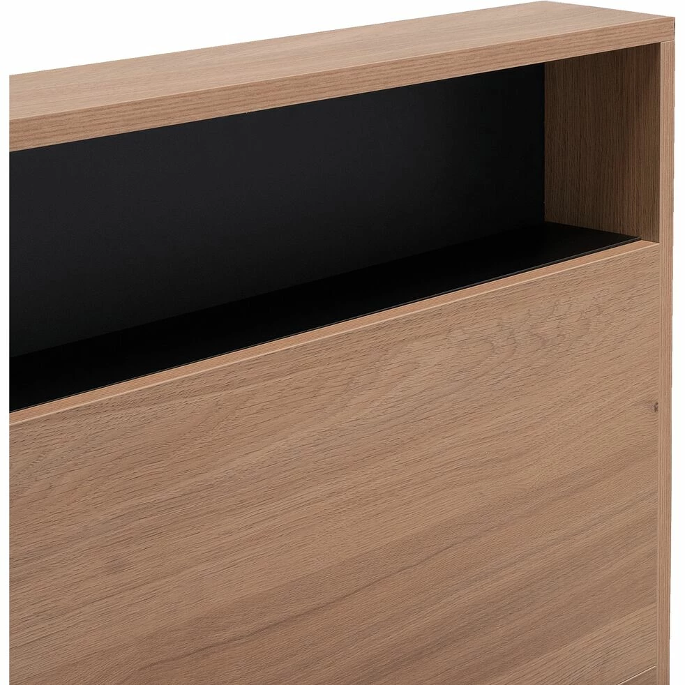 Panneau de particules, mélamine chêne naturel et mélamine noire.