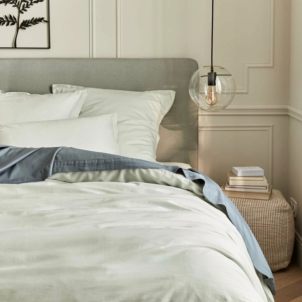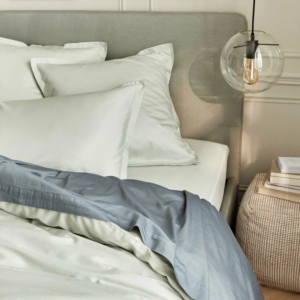 La gamme de linge de lit Satine se compose de draps plats, de taies d’oreillers, de housses de couette et de draps-housses. Découvrez cette sélection 100% en satin lavé offrant des éléments textiles de qualité qui vous durera dans le temps. D’une finesse remarquable et extrêmement doux au toucher, ce drap-plat en satin 115 fils est conçu au Portugal. D’une dimension en 270x300cm et d’un coloris bleu orage, ce linge de lit est un bel élément déco pour votre chambre à coucher.