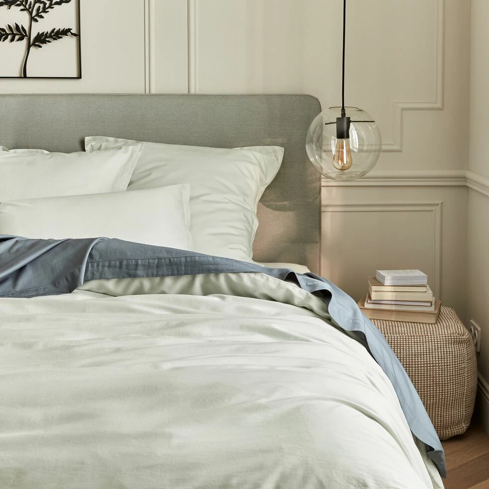 La gamme de linge de lit Satine se compose de draps plats, de taies d’oreillers, de housses de couette et de draps-housses. Découvrez cette sélection 100% en satin lavé offrant des éléments textiles de qualité qui vous durera dans le temps. D’une finesse remarquable et extrêmement douce au toucher, cette housse de couette en satin 115 fils est conçue au Portugal. D’une dimension en 260x240cm et d’un coloris vert opaline, ce linge de lit est un bel élément déco pour votre chambre à coucher.