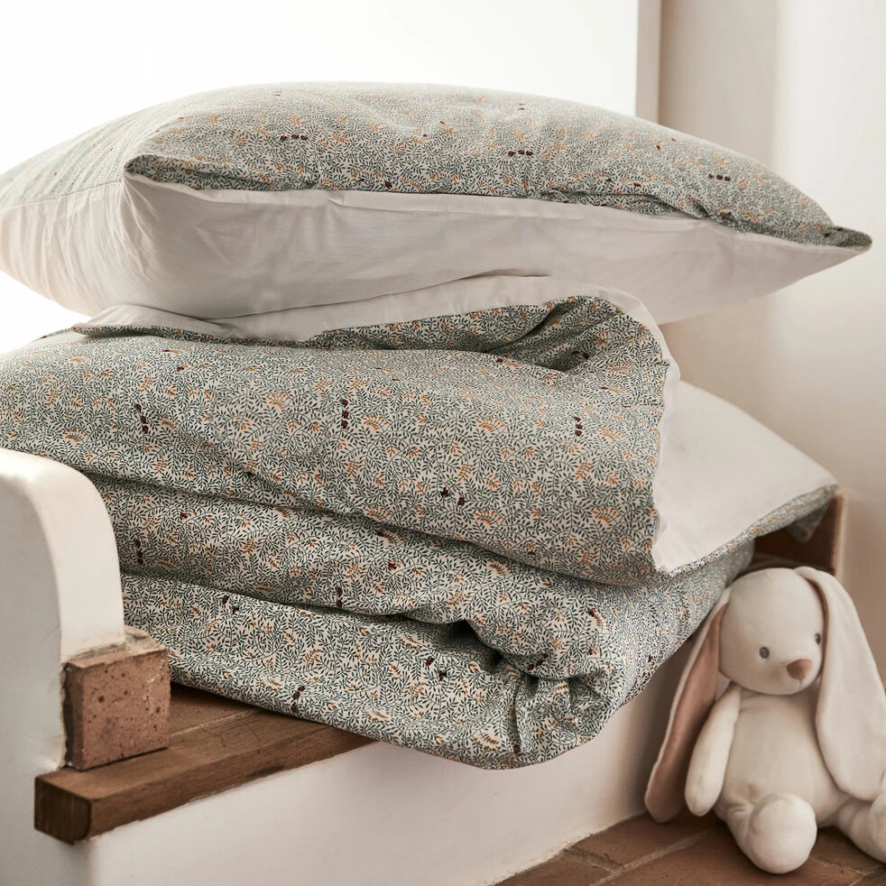 Décorez avec délicatesse la chambre de votre enfant grâce à cette charmante parure de lit en coton certifié Oekotex. Elle offre de jolis motifs délicats qui symbolisent des végétaux et on y trouve de petites coccinelles rigolotes comme dans une prairie. Invitation à la douceur et au rêve, offrez à votre enfant ce beau linge de lit pour lui aménager un nid douillet propice à de beaux rêves.