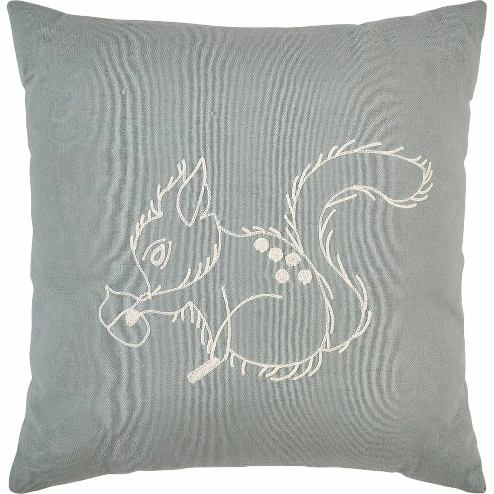 Ce coussin est doté d’une broderie proéminente en forme d’écureuil qui donne du relief et de la texture. Son gonflant met en avant le confort et le moelleux que procurera ce beau coussin à votre enfant. Sa matière naturelle en coton de qualité et son coloris vert pastel apporteront tendresse et légèreté. Coordonné à d’autres coussins du thème bosquet, il mettra en valeur la décoration de chambre de votre enfant pour dynamiser l’atmosphère.