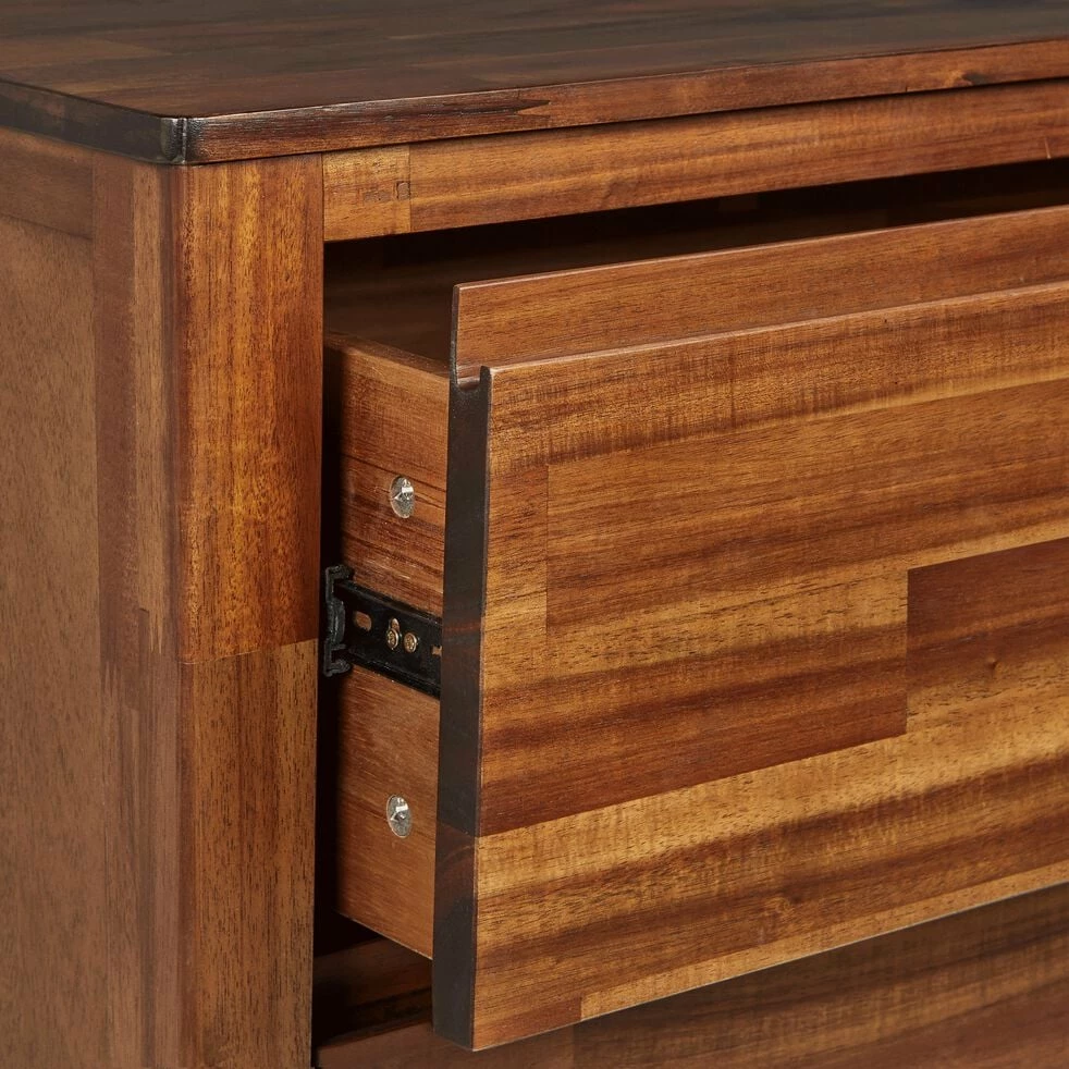 Structure en acacia massif FSC. Fond de tiroirs et panneau arrière en contreplaqué FSC . Panneaux de côté en panneaux de fibles de moyenne densité et placage acacia FSC.