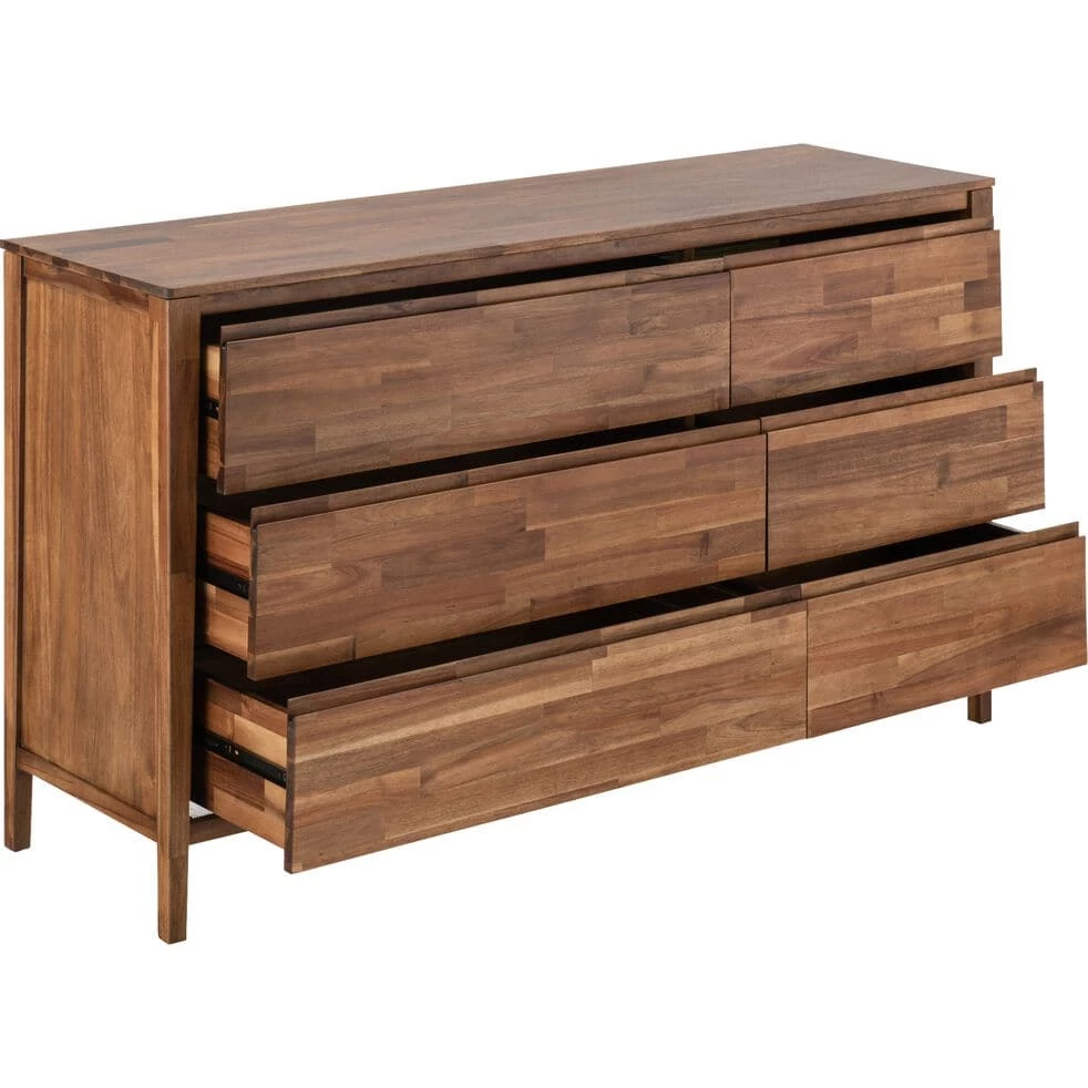 Structure en acacia massif FSC. Fond de tiroirs et panneau arrière en contreplaqué FSC . Panneaux de côté en panneaux de fibres de moyenne densité et placage acacia FSC.