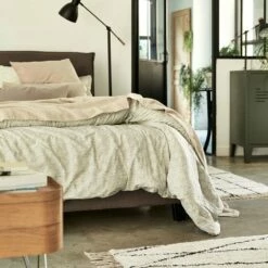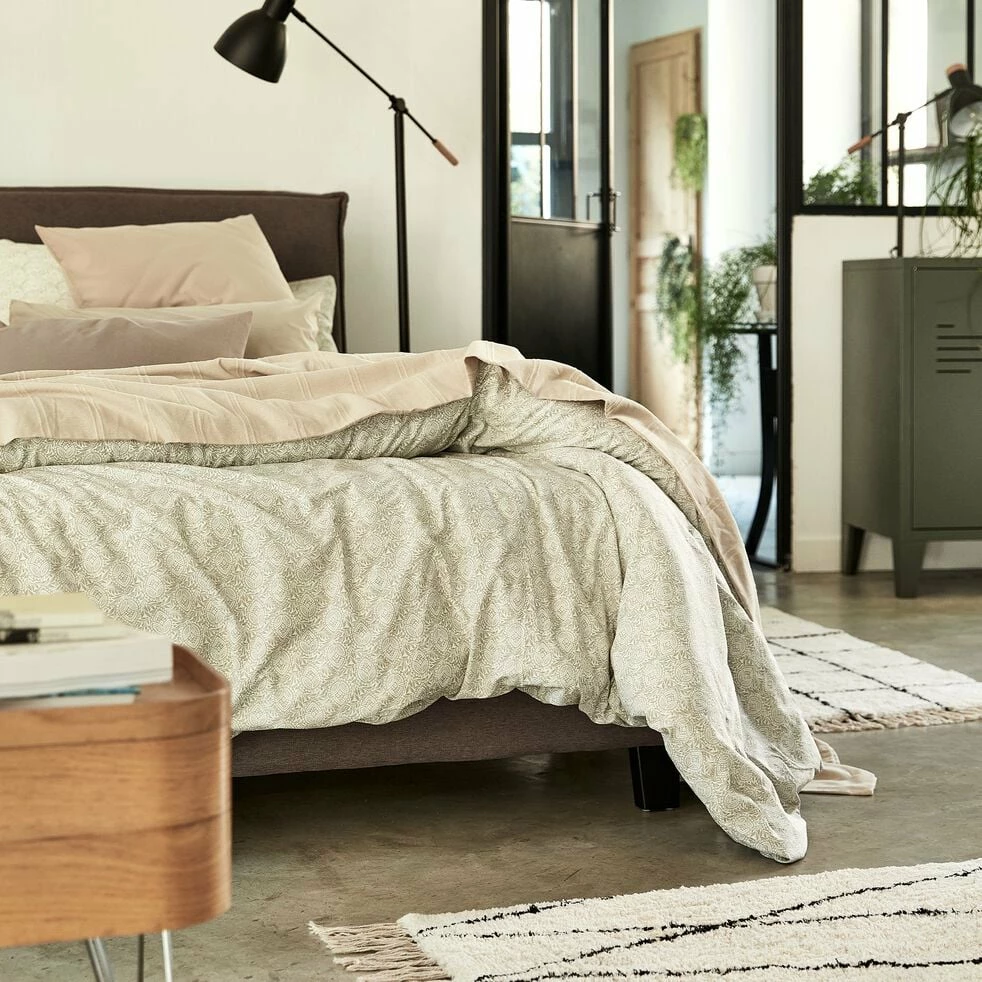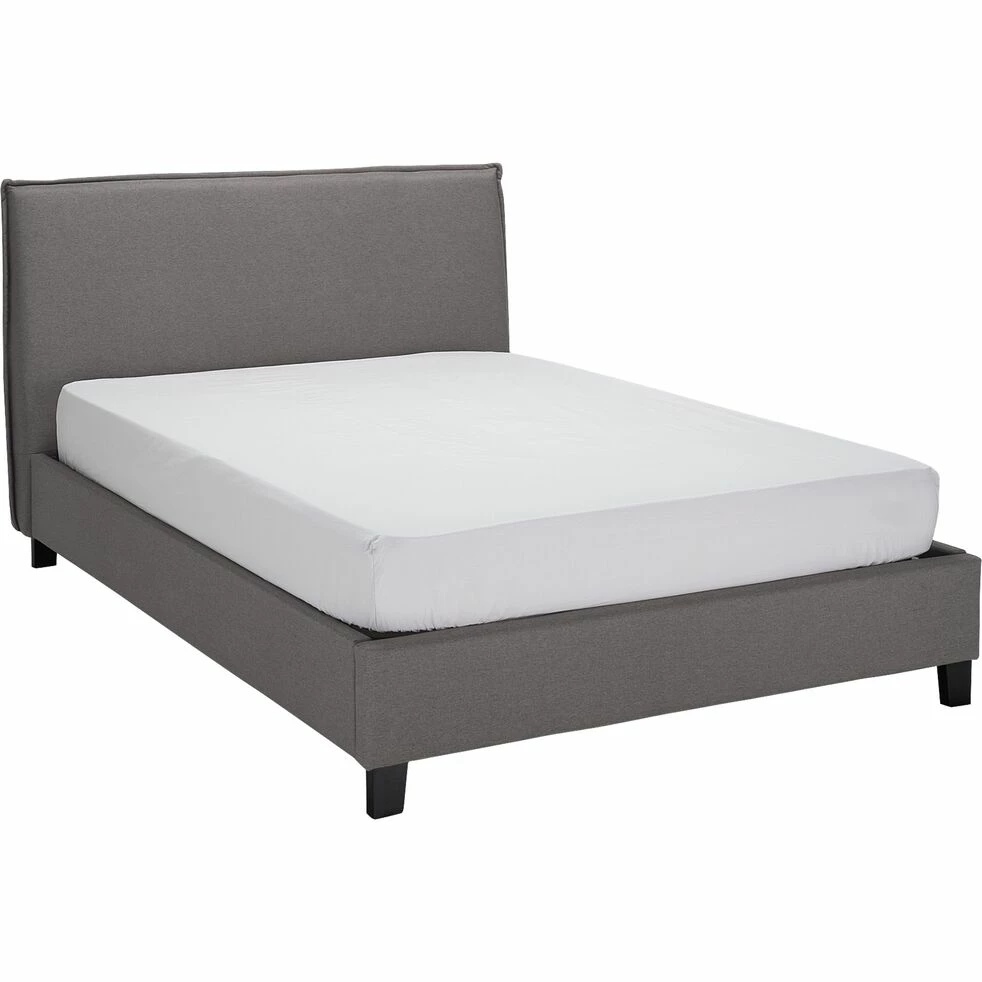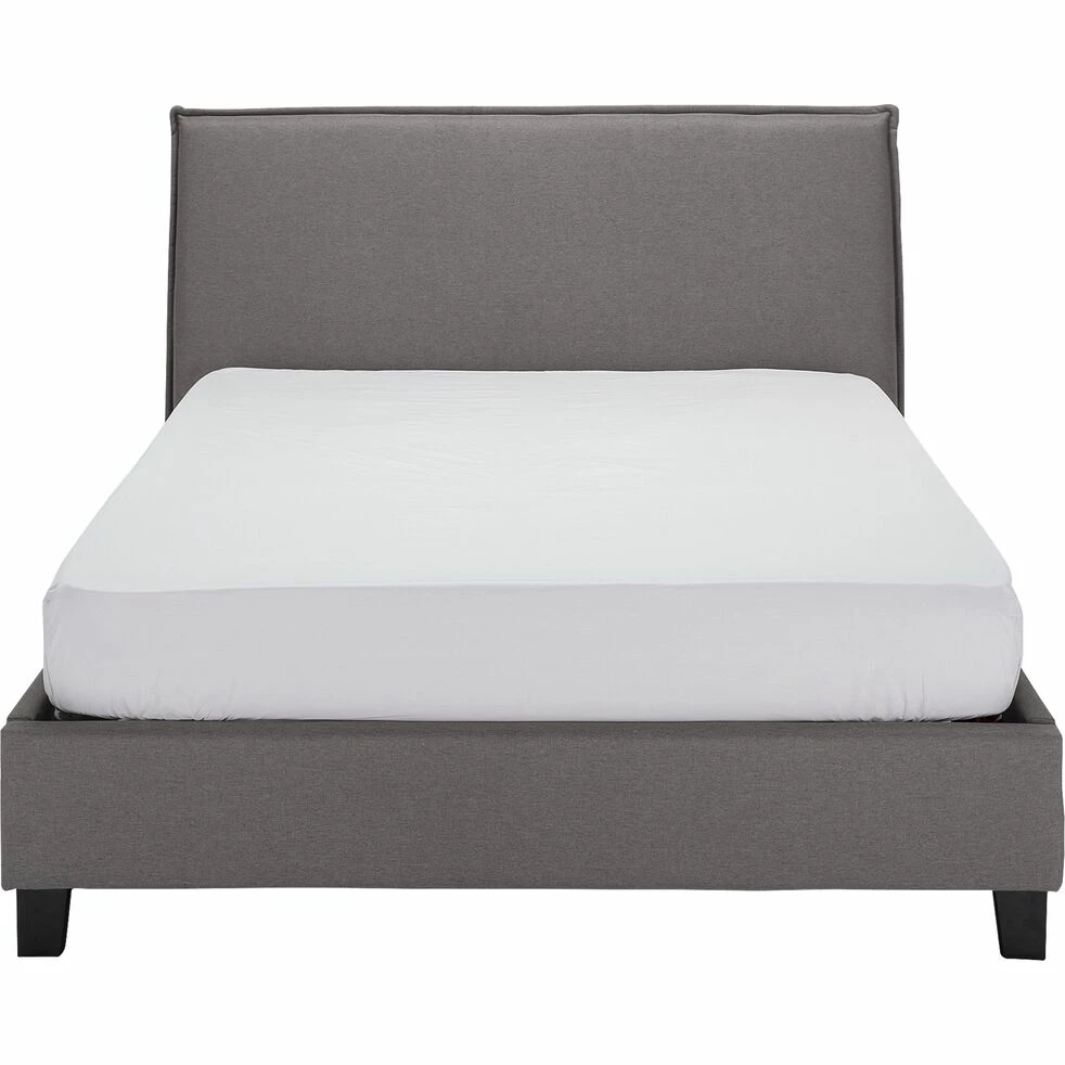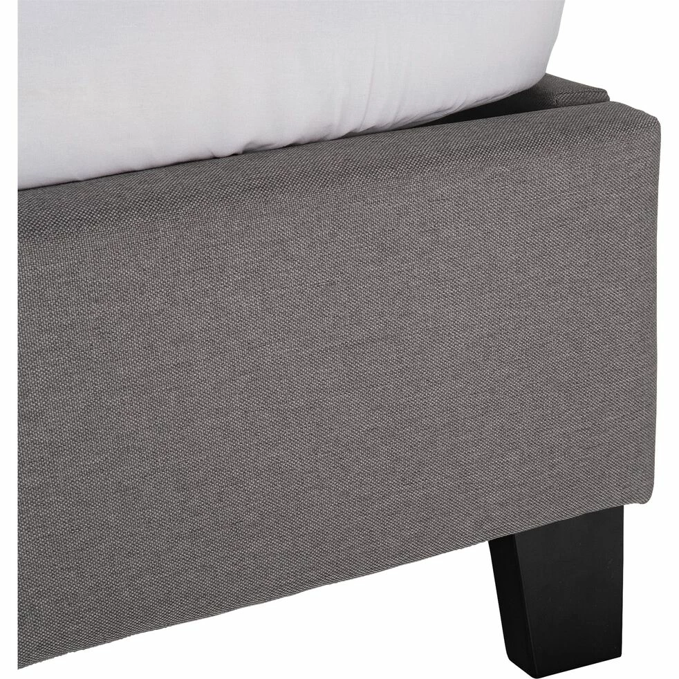 Ce lit en bois deux places arborant un revêtement en tissu est un meuble qui présente un style moderne au design contemporain. Une allure qui lui donne du caractère, sublimée par son coloris gris, intemporel. Un lit robuste qui vous assure des nuits reposantes et agréables dans une chambre à coucher à la décoration élégante. Habillez votre couchage d’une belle parure de lit pour obtenir un bel effet et faire de votre mobilier un réel élément de déco.