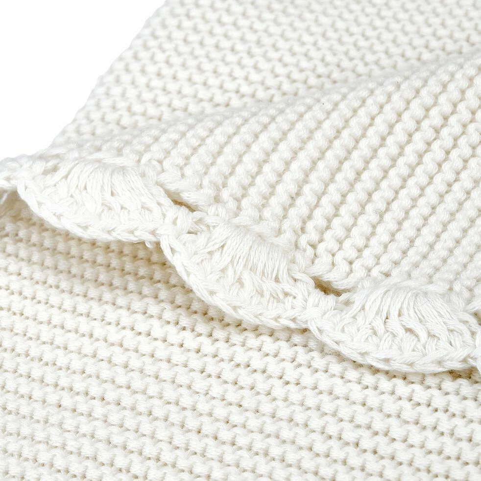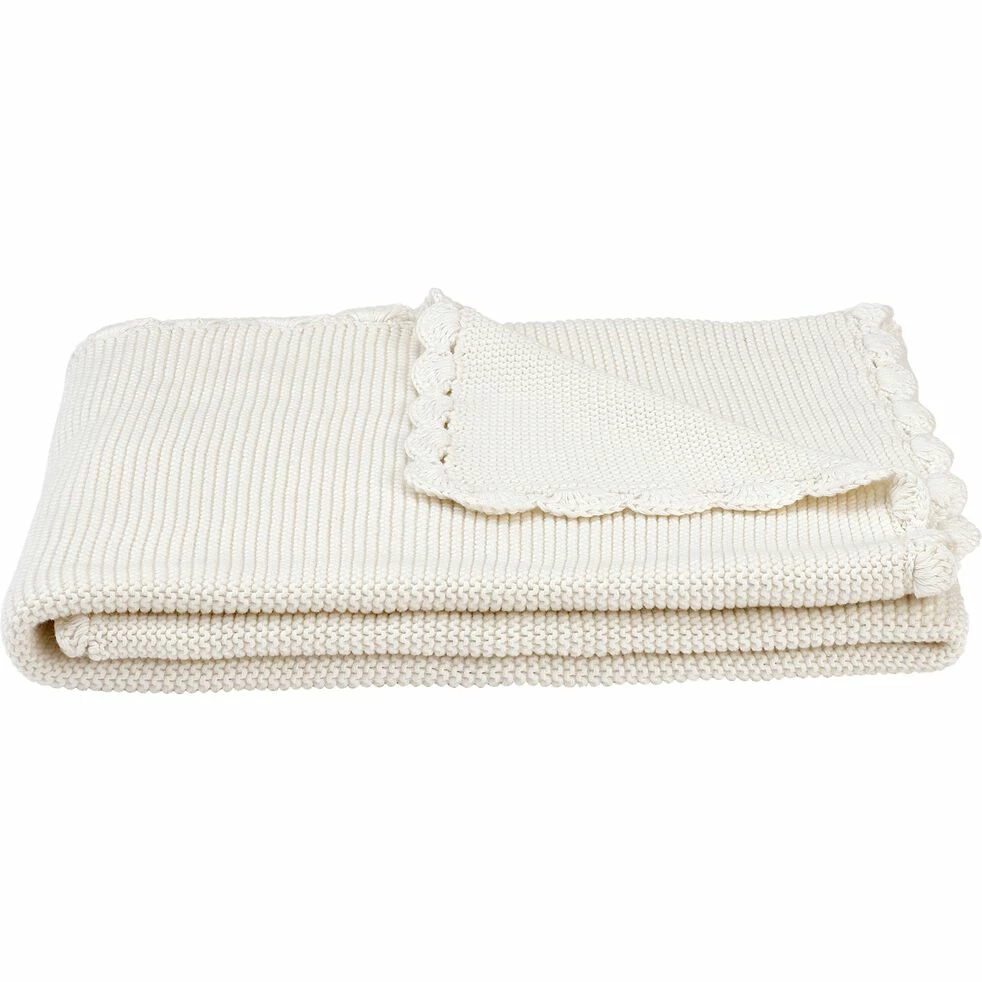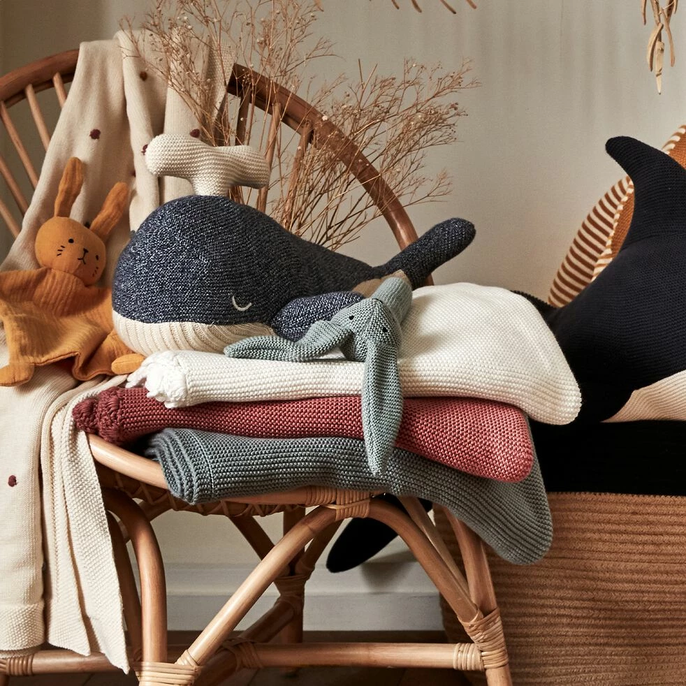 Optez pour ce plaid en maille et aux bords tricotés, pour couvrir avec tendresse et douceur votre enfant. 100% en coton et sublimé par de jolis détails, ce dernier s’affirme comme une pièce de qualité. Posé sur le lit, il vient compléter avec charme la parure de lit de votre petit et embellir sa décoration de chambre. Le plaid est une pièce déco incontournable.
